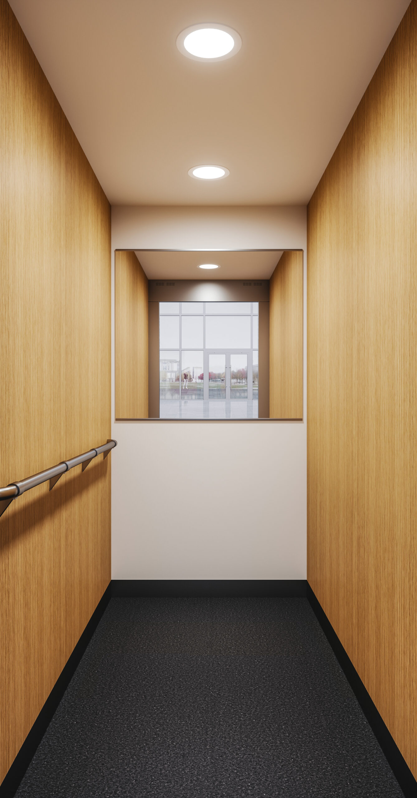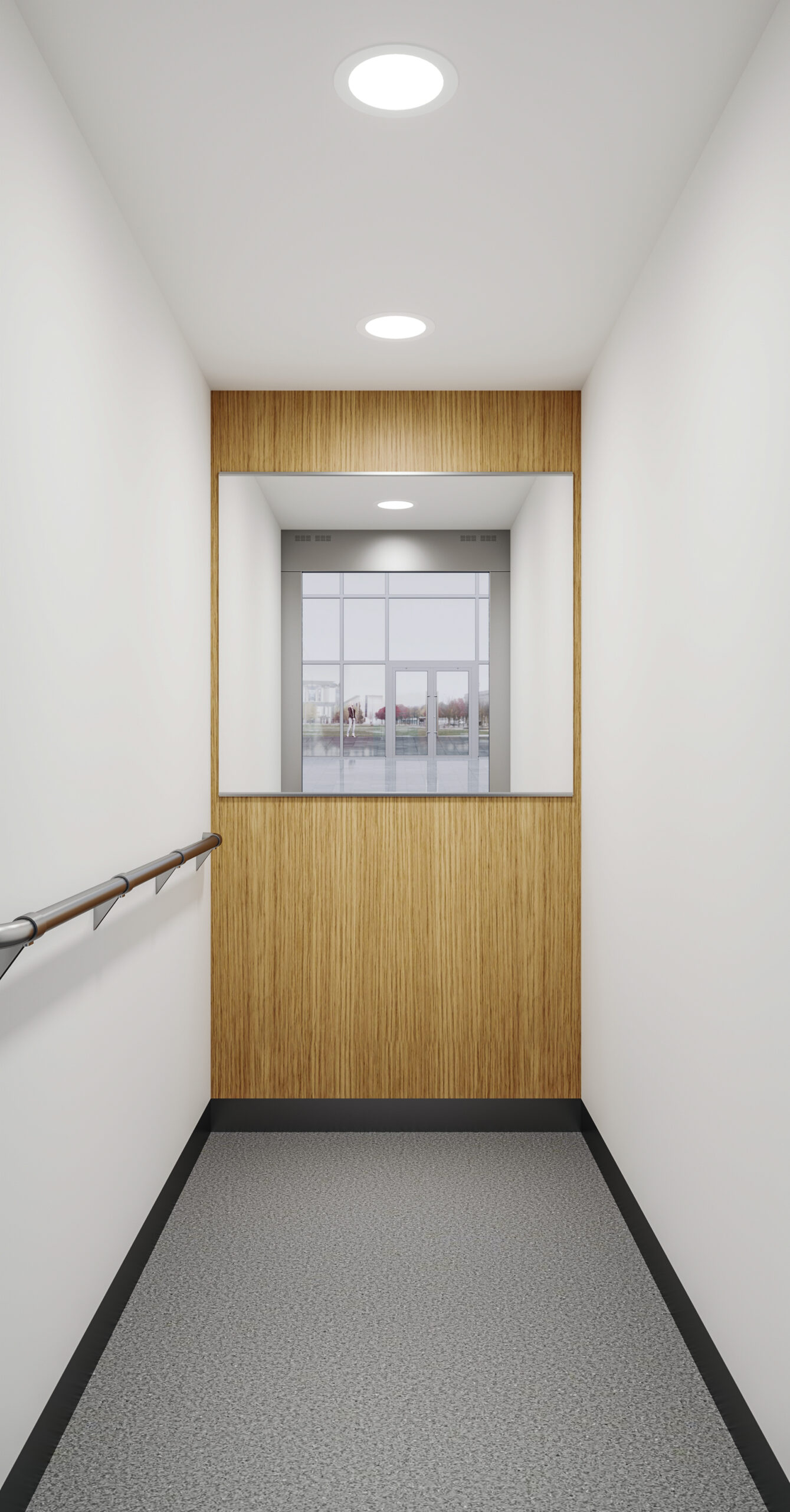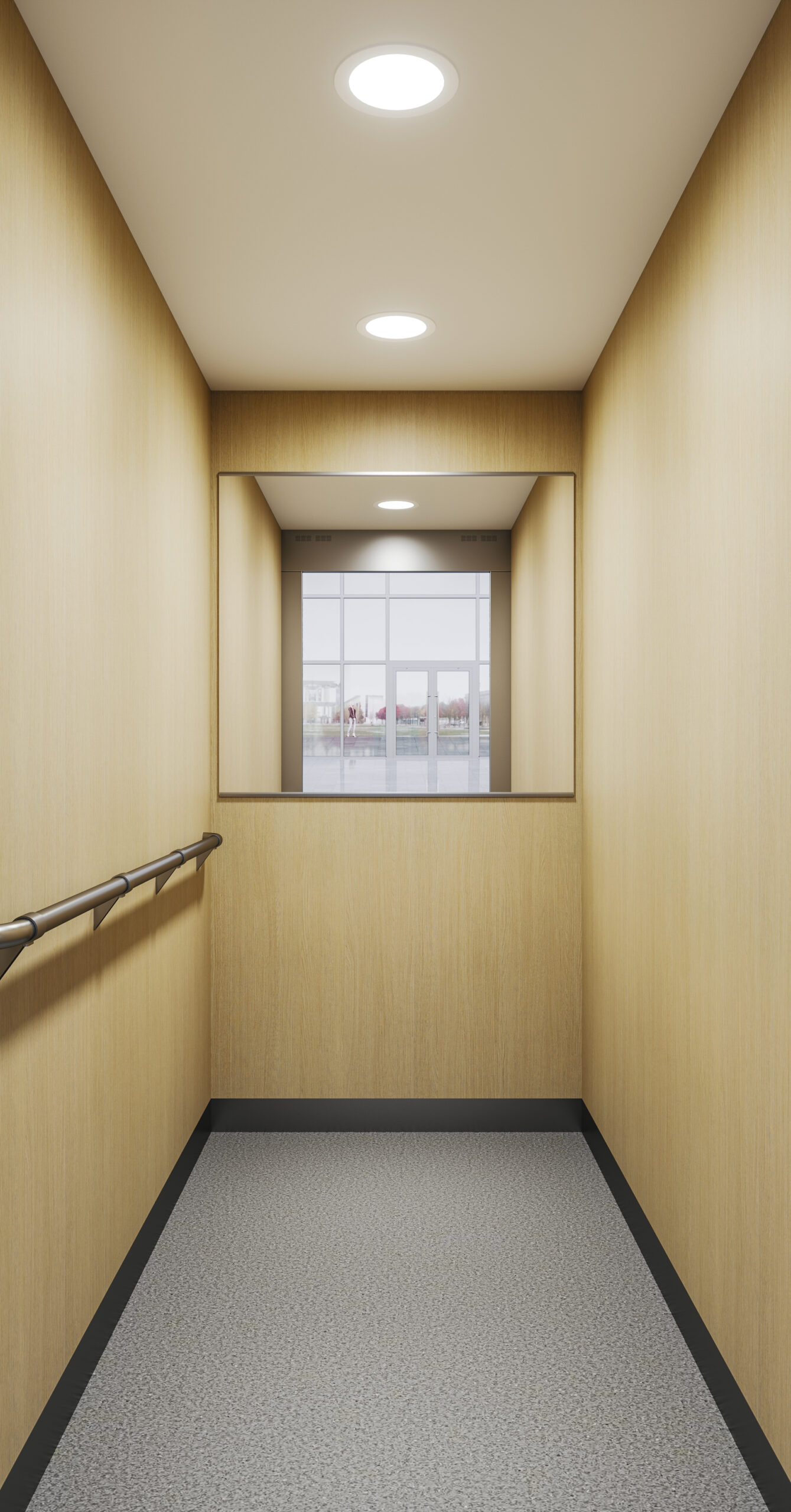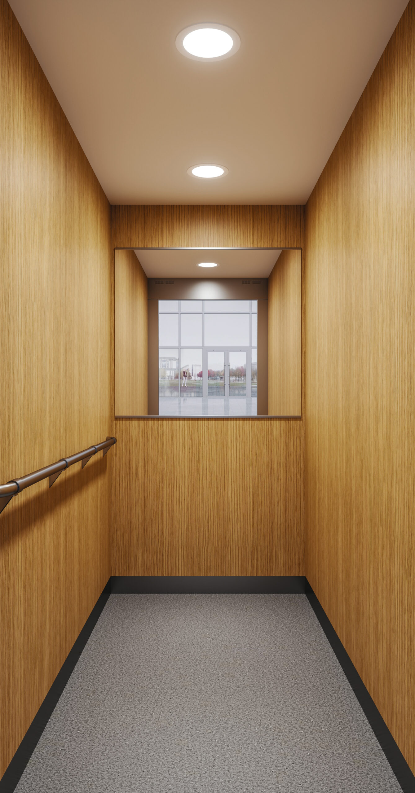 Regular är en traditionell hissinteriör med stående laminatpaneler. Stort urval av färger och komponenter. Passar för bostäder, skolor och industri.