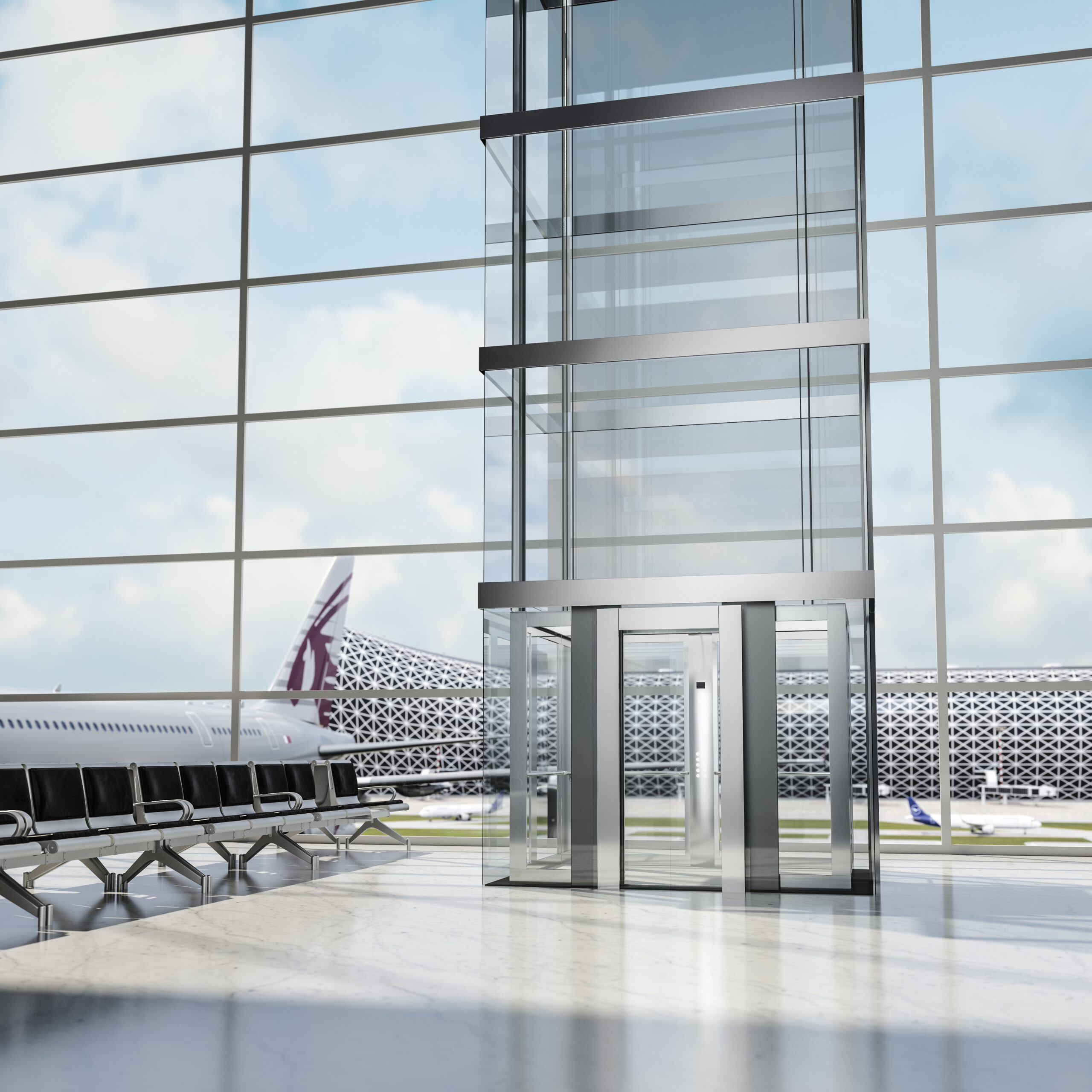 Vårt koncept Scenic representerar nästa nivå av transparens och elegans i vertikal transport. Genom glas, ljus och precision skapas en känsla av rörelse i frihet – lika mycket en arkitektonisk upplevelse som en hissresa.