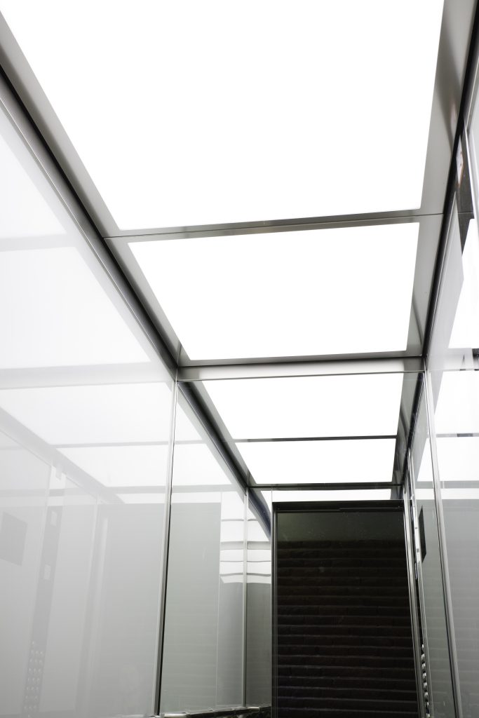Glas, härdat, järnfritt. Lackering baksida.