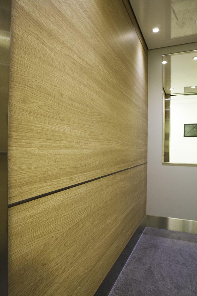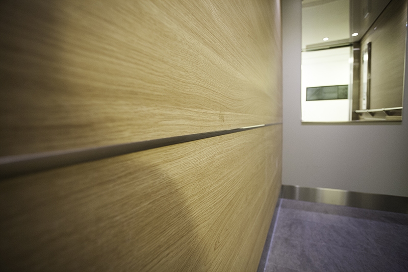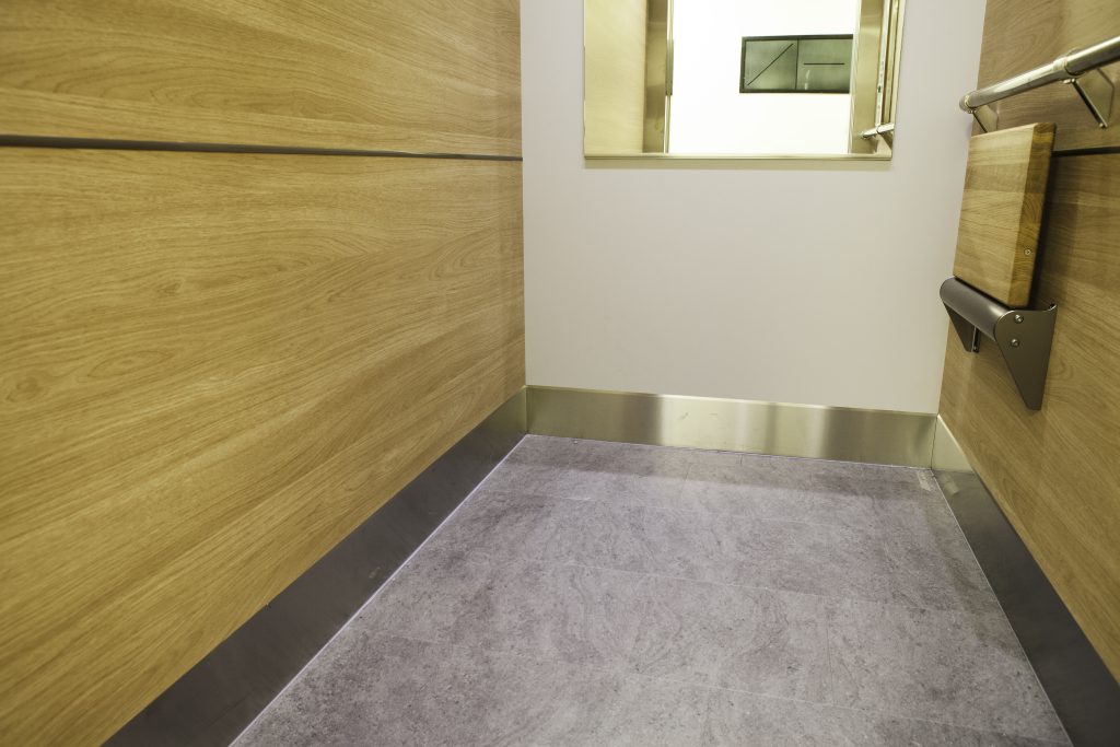 Laminat F5374 NAT på sidoväggar och Laminat F7927 MAT på bakvägg